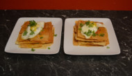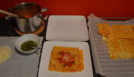 Jetzt geht das Schichten der feinen Einzelteile los: Brot, Kräuteröl, Tomatensauce, Käse, Brot, Kräuteröl, Tomatensauce – so lange, bis alles verbraucht ist. Zum Schluss das Spiegelei draufsetzen und mit Petersilie bestreuen.