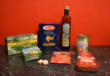 In der Zwischenzeit die Nudeln auf den Herd bringen und nach Packungsanweisung al dente kochen.