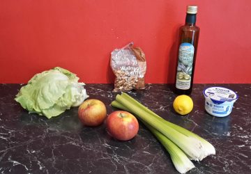 Karotten, Pastinaken, Salatkopf, Datteln, Petersilie, Zitrone, Grillkäse, Suppe, Tahina, Olivenöl, Cayennepfeffer, Piment, Koriander, Kurkuma, Zimt, Ingwer, Kreuzkümmel